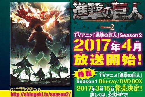 “我们是猎人,他们才是猎物。”“第一季居然是2013年的,时间过得好快。”“第二季应该是漫画34至70话左右,其中有一半内容艾伦都被监禁。”“一拖再拖终于定了下来。”“拖了好久,漫画都快完结了。”“不由自主要捂紧钱包。”“开播前还可以重温一遍第一季。”“果然动画是有生之年系列,艾伦小天使我来了。”“我相信这绝对是部精彩的动画,所谓的等待并不是痛苦的,只有慢慢等待、慢慢沉淀,动画才能制作得更好。2017年一定会看。”