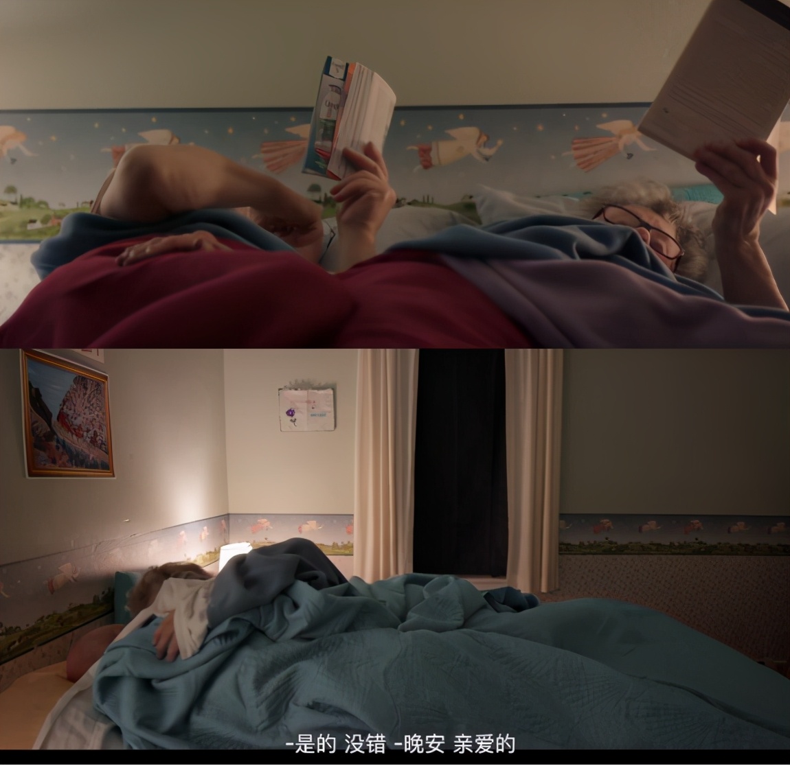 入睡时,也不忘给对方拥抱和互道晚安。