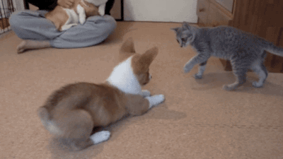 另外,猫咪对着狗狗发出“咕噜咕噜”声想要拉近关系时,狗狗却变得暴躁起来!原来这样的行为在狗狗看来也是挑衅,还代表着“别惹我,小心我揍你!”。因此,猫咪和狗狗的误会就产生了。最重要的是,它们还无法沟通,根本没办法向对方解释。