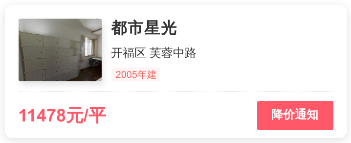 都市星光位于开福区芙蓉中路内,小区建成于2005年,开发商是湖南富湘房地产开发有限公司,小区物业是长沙明城物业。